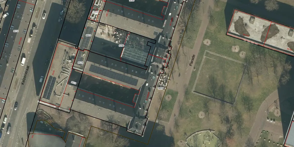 Het perceel waarop Parade 12-A staat heeft een oppervlakte van 4535 m². Dit is een zeer groot perceel. De perceeloppervlakte wordt geregistreerd door het Kadaster. Gedetailleerde informatie over de maten van dit perceel kunt u vinden in het rapport Kadastrale kaart met maatvoering van Parade 12-A.