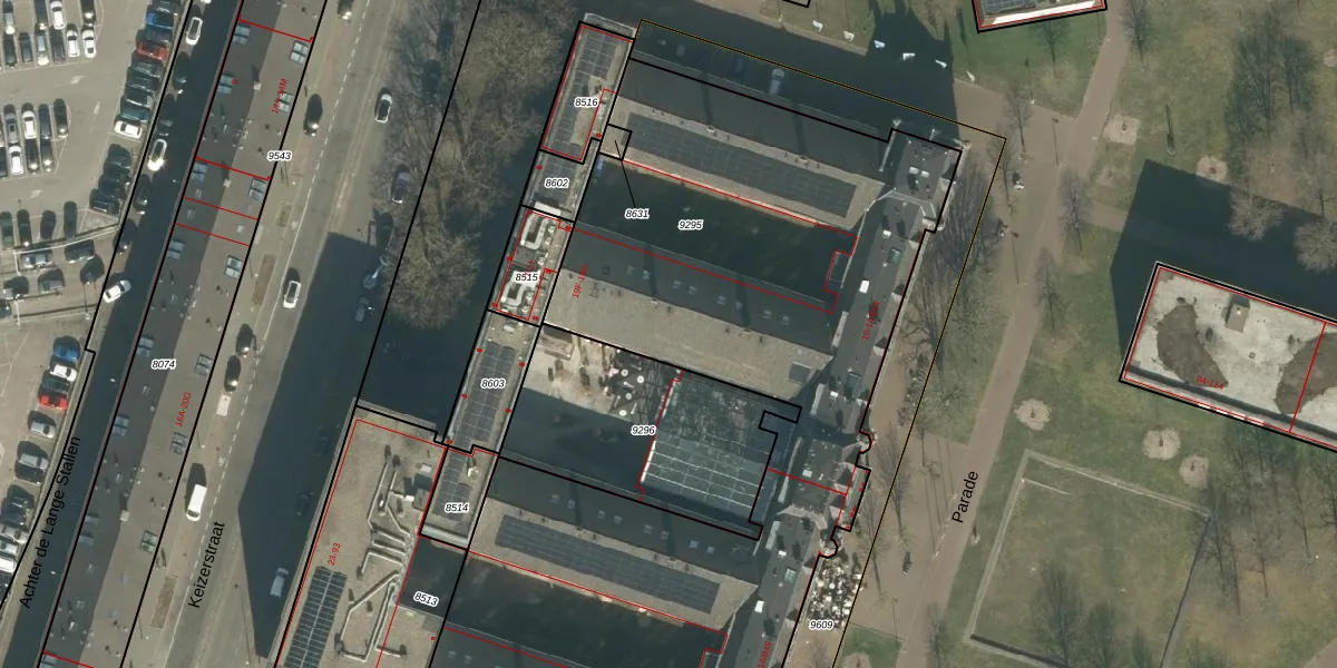 Het perceel waarop Parade 14-B23 staat heeft een oppervlakte van 4535 m². Dit is een zeer groot perceel. De perceeloppervlakte wordt geregistreerd door het Kadaster. Gedetailleerde informatie over de maten van dit perceel kunt u vinden in het rapport Kadastrale kaart met maatvoering van Parade 14-B23.