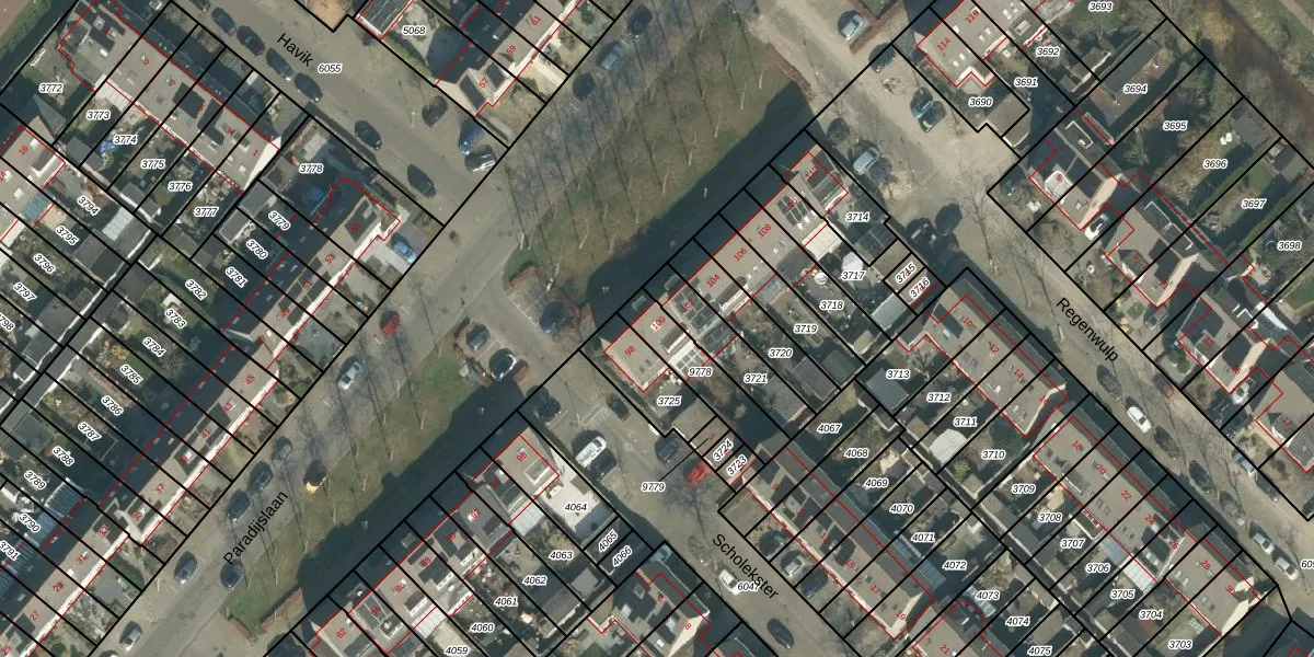 Paradijslaan 100 is gelegen op kadastraal perceel BDA00H9778. Deze kadastrale aanduiding is uniek en wordt gebruikt door het Kadaster om eigendomsrechten en andere zakelijke rechten vast te leggen. Het perceel maakt onderdeel uit van de kadastrale gemeente Breda.