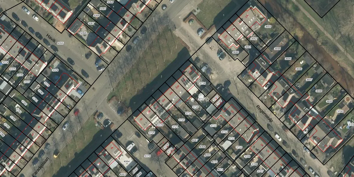 Paradijslaan 108 is gelegen op kadastraal perceel BDA00H3718. Deze kadastrale aanduiding is uniek en wordt gebruikt door het Kadaster om eigendomsrechten en andere zakelijke rechten vast te leggen. Het perceel maakt onderdeel uit van de kadastrale gemeente Breda.