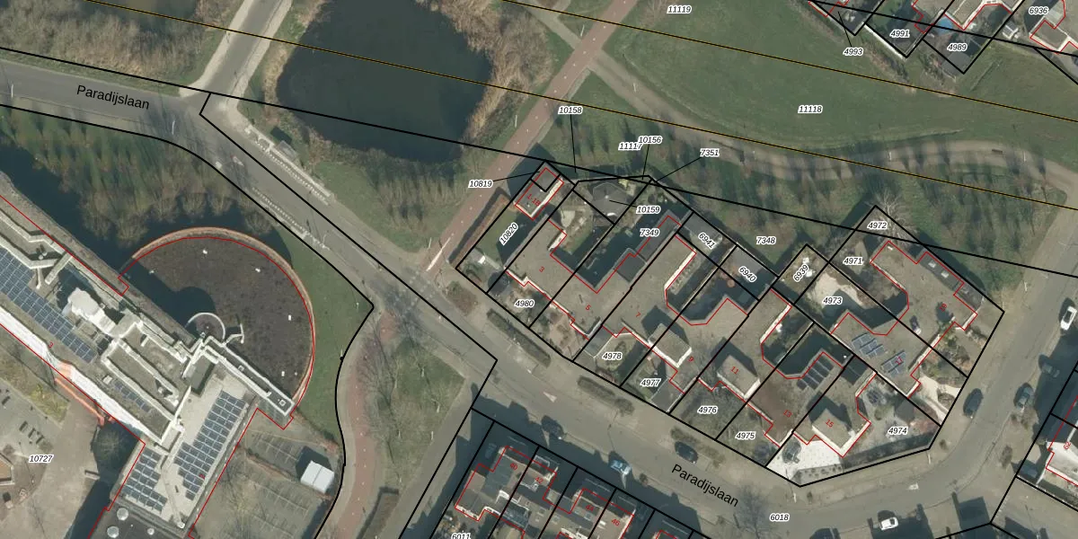 Paradijslaan 3 is gelegen op kadastraal perceel BDA00H4980. Deze kadastrale aanduiding is uniek en wordt gebruikt door het Kadaster om eigendomsrechten en andere zakelijke rechten vast te leggen. Het perceel maakt onderdeel uit van de kadastrale gemeente Breda.