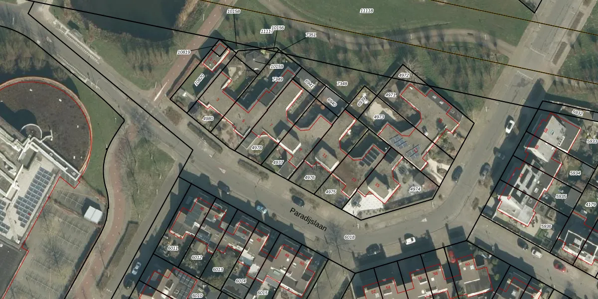 Paradijslaan 9 is gelegen op kadastraal perceel BDA00H4977. Deze kadastrale aanduiding is uniek en wordt gebruikt door het Kadaster om eigendomsrechten en andere zakelijke rechten vast te leggen. Het perceel maakt onderdeel uit van de kadastrale gemeente Breda.