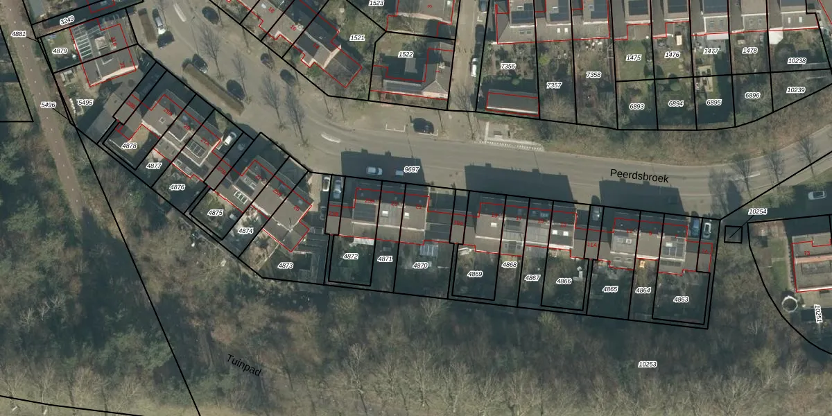 Gebruik de zoekbalk of klik op een perceel voor informatie over de adressen binnen dit perceel.