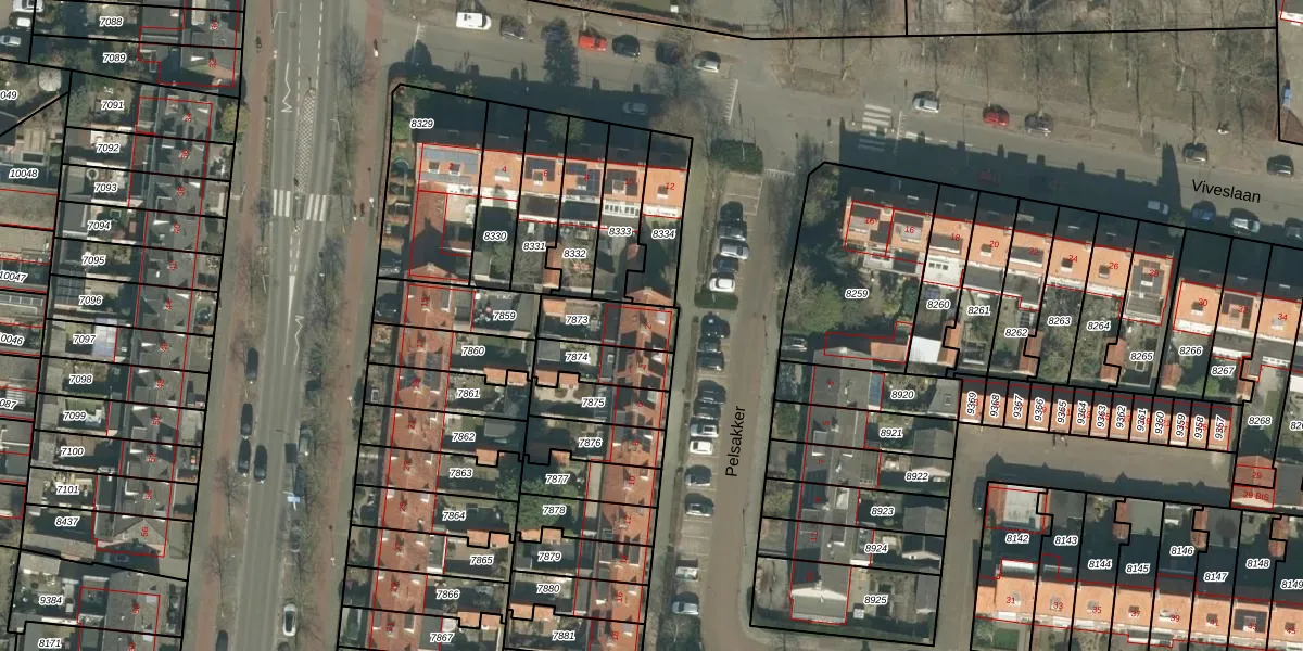 Gebruik de zoekbalk of klik op een perceel voor informatie over de adressen binnen dit perceel.