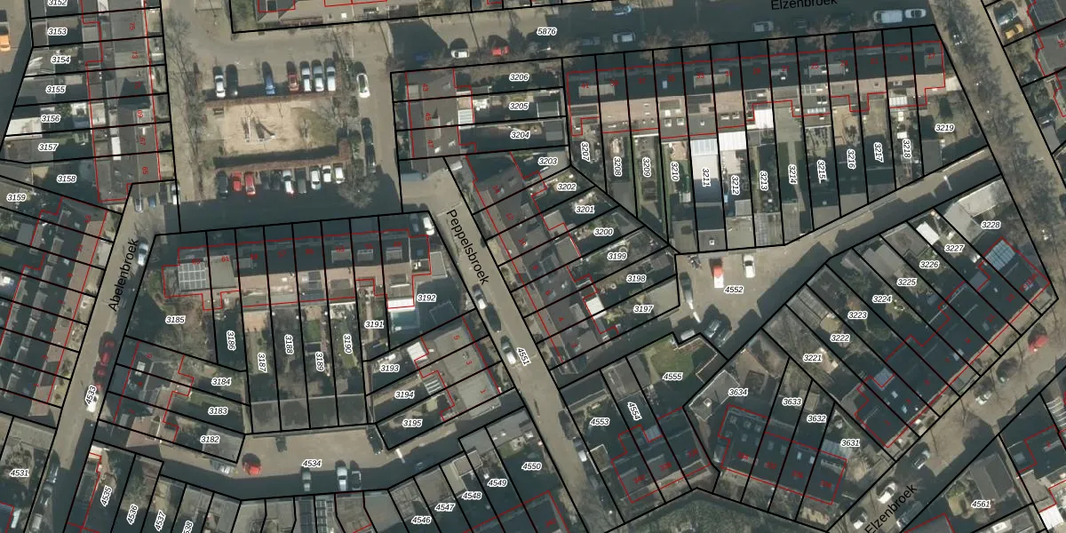 Gebruik de zoekbalk of klik op een perceel voor informatie over de adressen binnen dit perceel.
