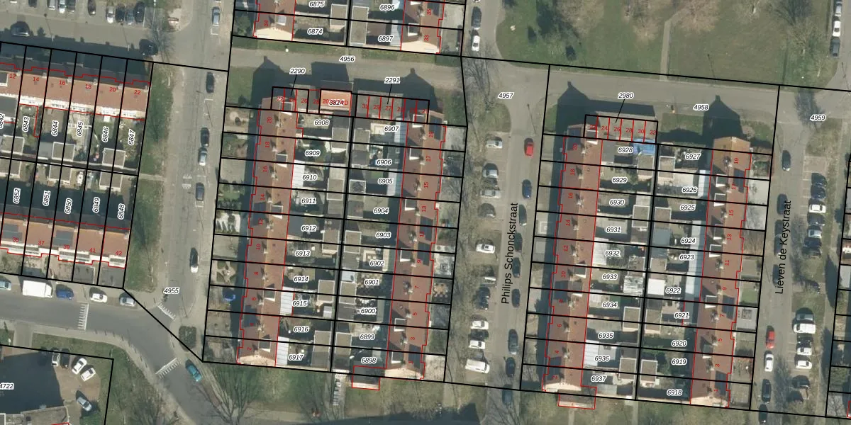 Philips Schonckstraat 13 is gelegen op kadastraal perceel BDA00G6904. Deze kadastrale aanduiding is uniek en wordt gebruikt door het Kadaster om eigendomsrechten en andere zakelijke rechten vast te leggen. Het perceel maakt onderdeel uit van de kadastrale gemeente Breda.