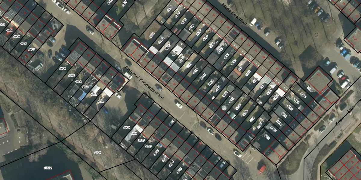 Pieternel Koomansstraat 20 is gelegen op kadastraal perceel BDA00H9216. Deze kadastrale aanduiding is uniek en wordt gebruikt door het Kadaster om eigendomsrechten en andere zakelijke rechten vast te leggen. Het perceel maakt onderdeel uit van de kadastrale gemeente Breda.