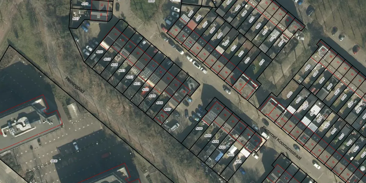 Het perceel waarop Pieternel Koomansstraat 39 staat heeft een oppervlakte van 193 m². Dit is een middelgroot perceel. De perceeloppervlakte wordt geregistreerd door het Kadaster. Gedetailleerde informatie over de maten van dit perceel kunt u vinden in het rapport Kadastrale kaart met maatvoering van Pieternel Koomansstraat 39.