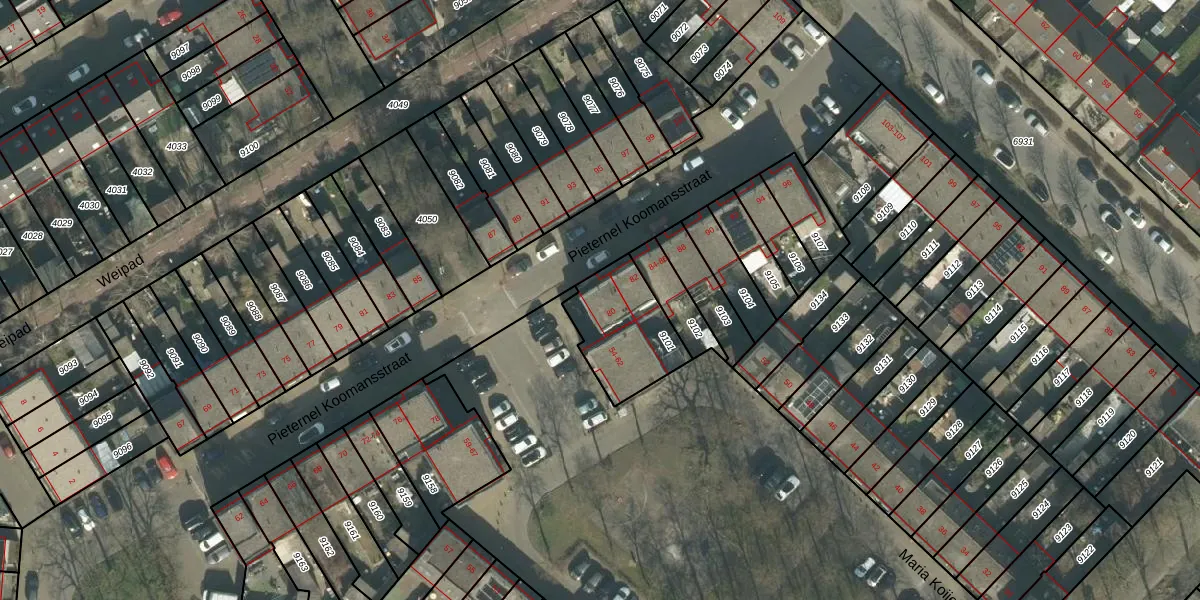 Het perceel waarop Pieternel Koomansstraat 80 staat heeft een oppervlakte van 300 m². Dit is een groot perceel. De perceeloppervlakte wordt geregistreerd door het Kadaster. Gedetailleerde informatie over de maten van dit perceel kunt u vinden in het rapport Kadastrale kaart met maatvoering van Pieternel Koomansstraat 80.