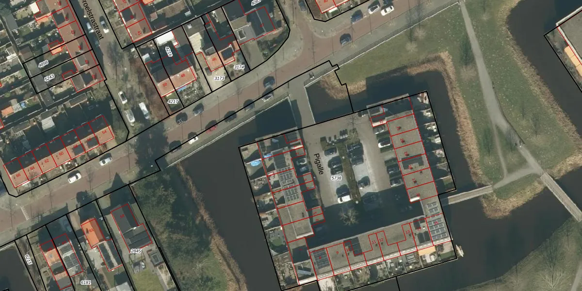 Het perceel waarop Pigalle 1 staat heeft een oppervlakte van 3682 m². Dit is een zeer groot perceel. De perceeloppervlakte wordt geregistreerd door het Kadaster. Gedetailleerde informatie over de maten van dit perceel kunt u vinden in het rapport Kadastrale kaart met maatvoering van Pigalle 1.