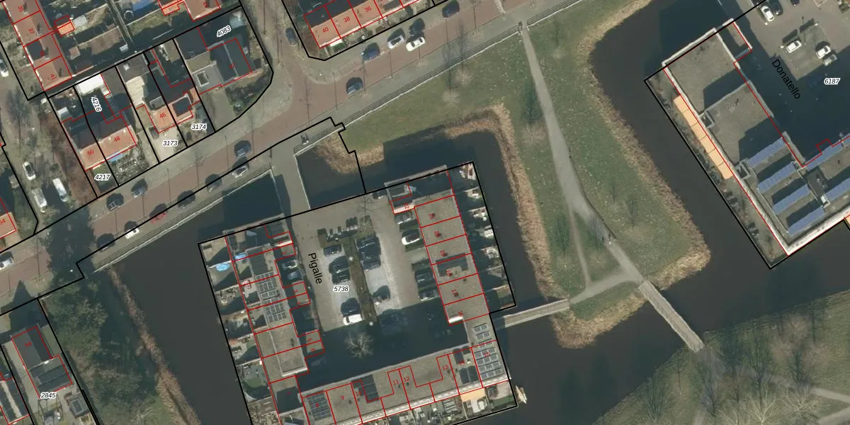 Het perceel waarop Pigalle 21 staat heeft een oppervlakte van 3682 m². Dit is een zeer groot perceel. De perceeloppervlakte wordt geregistreerd door het Kadaster. Gedetailleerde informatie over de maten van dit perceel kunt u vinden in het rapport Kadastrale kaart met maatvoering van Pigalle 21.