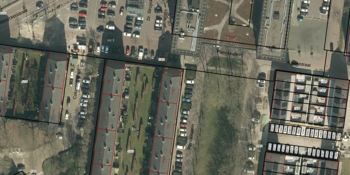 Het perceel waarop Planciusplein 4 staat heeft een oppervlakte van 4559 m². Dit is een zeer groot perceel. De perceeloppervlakte wordt geregistreerd door het Kadaster. Gedetailleerde informatie over de maten van dit perceel kunt u vinden in het rapport Kadastrale kaart met maatvoering van Planciusplein 4.