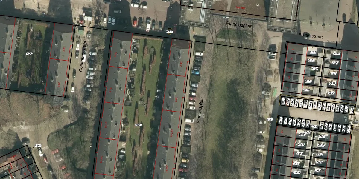 Het perceel waarop Planciusplein 6-B staat heeft een oppervlakte van 4559 m². Dit is een zeer groot perceel. De perceeloppervlakte wordt geregistreerd door het Kadaster. Gedetailleerde informatie over de maten van dit perceel kunt u vinden in het rapport Kadastrale kaart met maatvoering van Planciusplein 6-B.