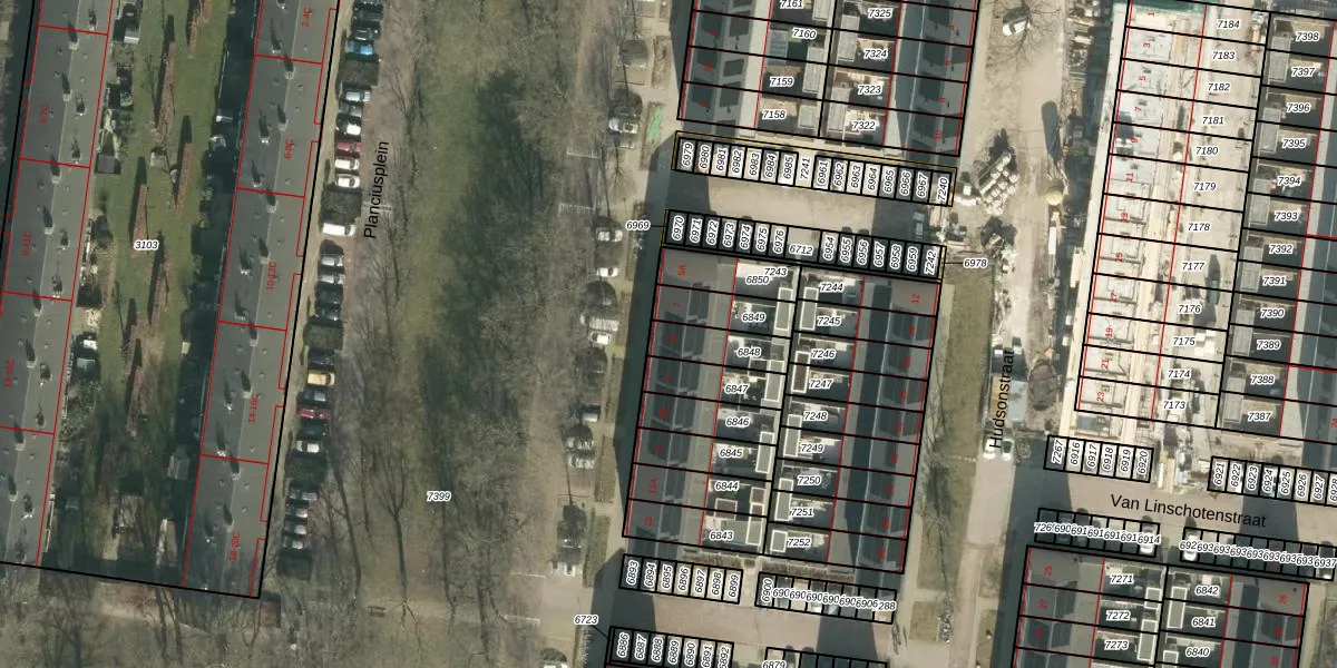 Gebruik de zoekbalk of klik op een perceel voor informatie over de adressen binnen dit perceel.
