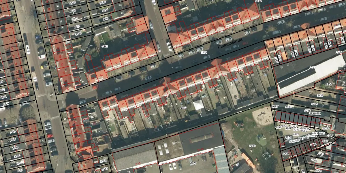 Plataanstraat 45 is gelegen op kadastraal perceel BDA00E1677. Deze kadastrale aanduiding is uniek en wordt gebruikt door het Kadaster om eigendomsrechten en andere zakelijke rechten vast te leggen. Het perceel maakt onderdeel uit van de kadastrale gemeente Breda.