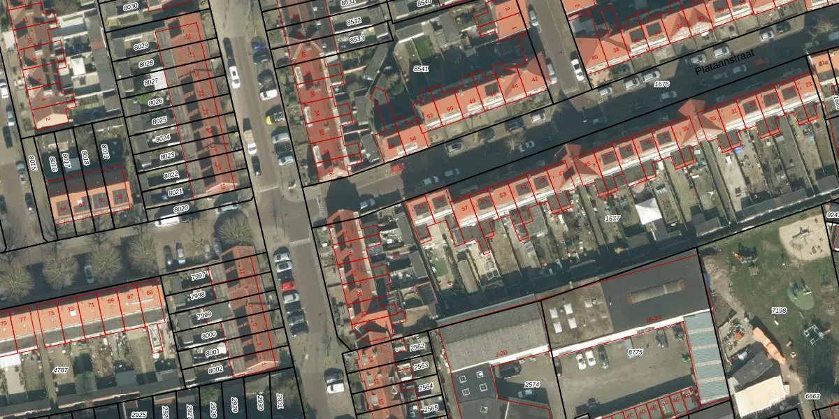 Plataanstraat 61 is gelegen op kadastraal perceel BDA00E1677. Deze kadastrale aanduiding is uniek en wordt gebruikt door het Kadaster om eigendomsrechten en andere zakelijke rechten vast te leggen. Het perceel maakt onderdeel uit van de kadastrale gemeente Breda.