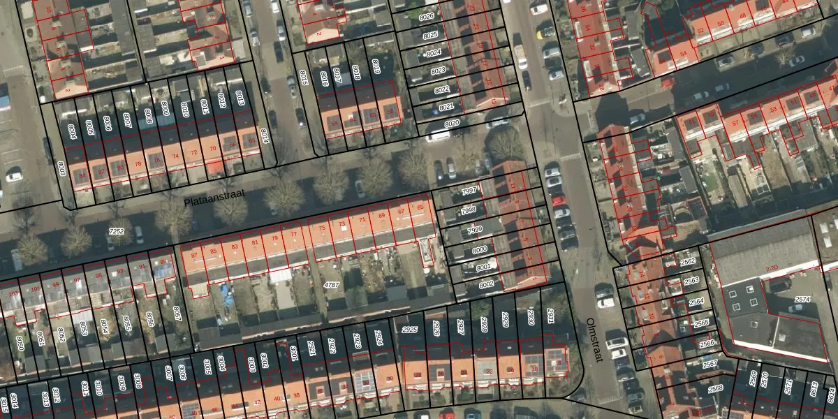 Plataanstraat 65 is gelegen op kadastraal perceel BDA00E4787. Deze kadastrale aanduiding is uniek en wordt gebruikt door het Kadaster om eigendomsrechten en andere zakelijke rechten vast te leggen. Het perceel maakt onderdeel uit van de kadastrale gemeente Breda.
