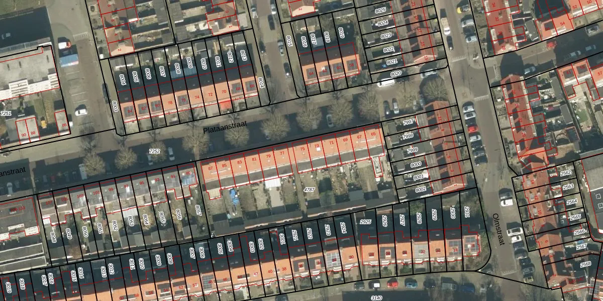 Plataanstraat 75 is gelegen op kadastraal perceel BDA00E4787. Deze kadastrale aanduiding is uniek en wordt gebruikt door het Kadaster om eigendomsrechten en andere zakelijke rechten vast te leggen. Het perceel maakt onderdeel uit van de kadastrale gemeente Breda.