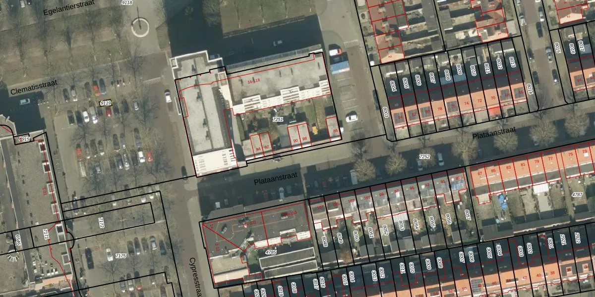 Plataanstraat 90 is gelegen op kadastraal perceel BDA00E7251. Deze kadastrale aanduiding is uniek en wordt gebruikt door het Kadaster om eigendomsrechten en andere zakelijke rechten vast te leggen. Het perceel maakt onderdeel uit van de kadastrale gemeente Breda.