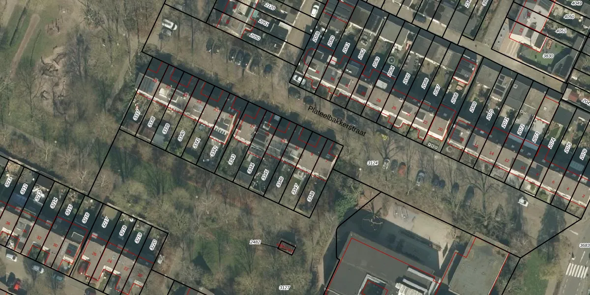 Plateelbakkerstraat 11 is gelegen op kadastraal perceel PCH00N3346. Deze kadastrale aanduiding is uniek en wordt gebruikt door het Kadaster om eigendomsrechten en andere zakelijke rechten vast te leggen. Het perceel maakt onderdeel uit van de kadastrale gemeente Princenhage.