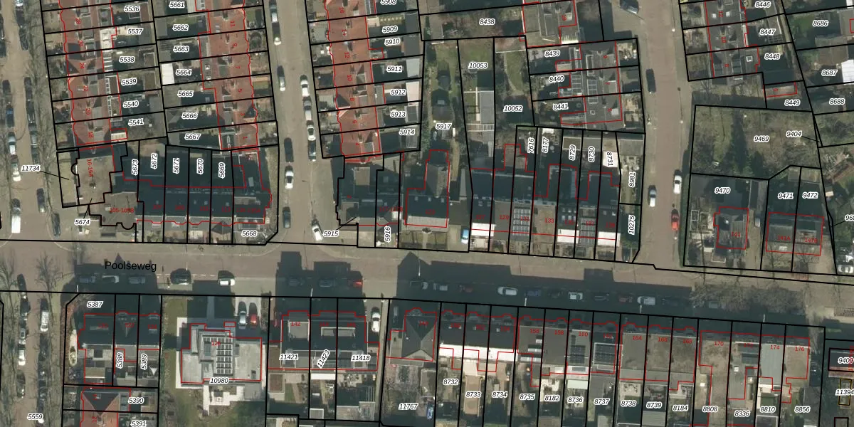 Gebruik de zoekbalk of klik op een perceel voor informatie over de adressen binnen dit perceel.