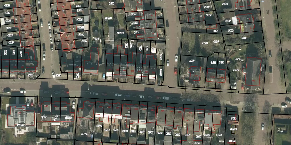 Gebruik de zoekbalk of klik op een perceel voor informatie over de adressen binnen dit perceel.