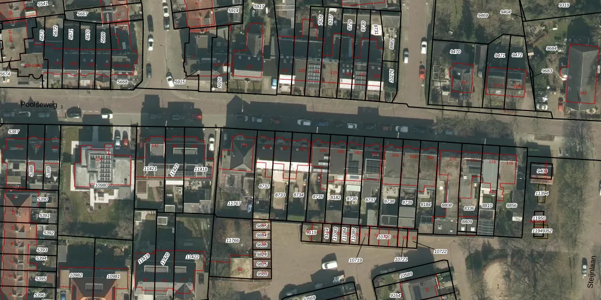 Gebruik de zoekbalk of klik op een perceel voor informatie over de adressen binnen dit perceel.