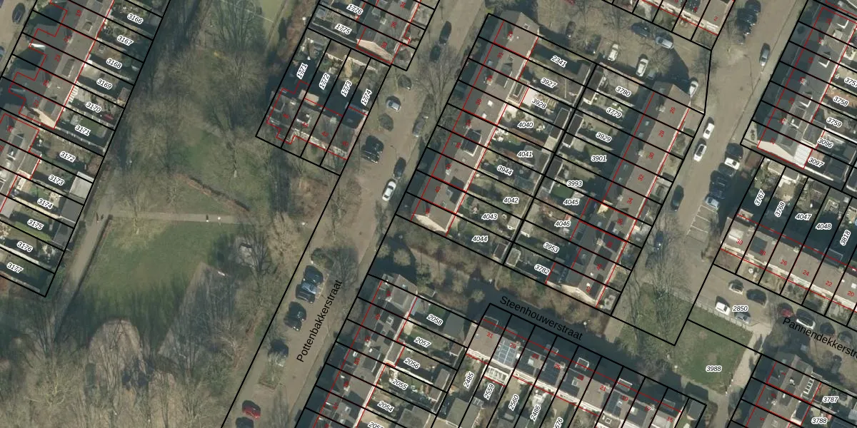 Pottenbakkerstraat 45 is gelegen op kadastraal perceel PCH00N4044. Deze kadastrale aanduiding is uniek en wordt gebruikt door het Kadaster om eigendomsrechten en andere zakelijke rechten vast te leggen. Het perceel maakt onderdeel uit van de kadastrale gemeente Princenhage.
