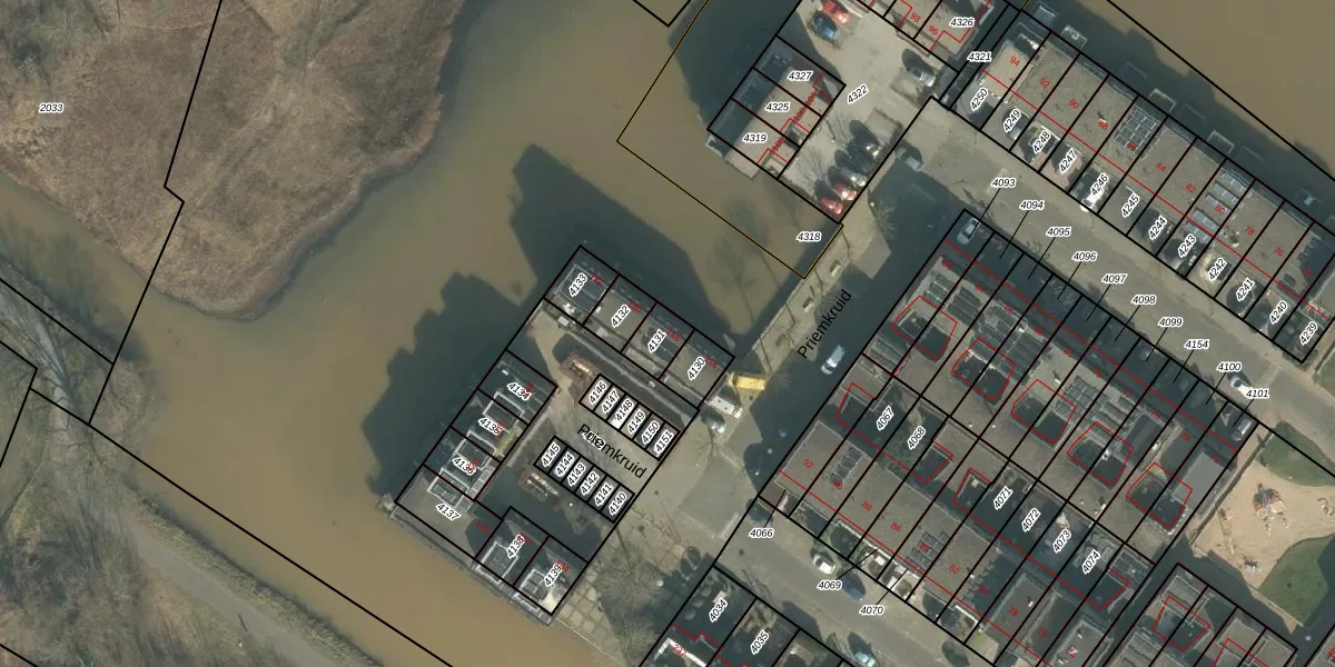 Gebruik de zoekbalk of klik op een perceel voor informatie over de adressen binnen dit perceel.