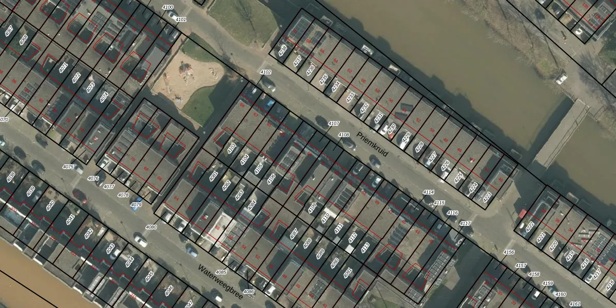 Priemkruid 59 is gelegen op kadastraal perceel BDA00I4107. Deze kadastrale aanduiding is uniek en wordt gebruikt door het Kadaster om eigendomsrechten en andere zakelijke rechten vast te leggen. Het perceel maakt onderdeel uit van de kadastrale gemeente Breda.