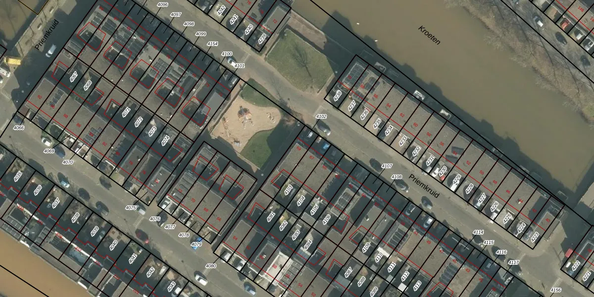 Priemkruid 69 is gelegen op kadastraal perceel BDA00I4102. Deze kadastrale aanduiding is uniek en wordt gebruikt door het Kadaster om eigendomsrechten en andere zakelijke rechten vast te leggen. Het perceel maakt onderdeel uit van de kadastrale gemeente Breda.