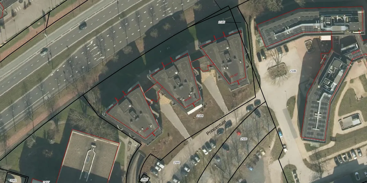 Het perceel waarop Princentuin 104 staat heeft een oppervlakte van 4385 m². Dit is een zeer groot perceel. De perceeloppervlakte wordt geregistreerd door het Kadaster. Gedetailleerde informatie over de maten van dit perceel kunt u vinden in het rapport Kadastrale kaart met maatvoering van Princentuin 104.