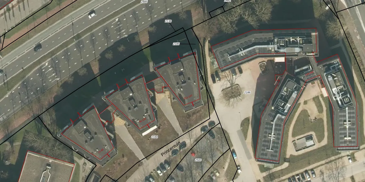 Het perceel waarop Princentuin 118 staat heeft een oppervlakte van 4385 m². Dit is een zeer groot perceel. De perceeloppervlakte wordt geregistreerd door het Kadaster. Gedetailleerde informatie over de maten van dit perceel kunt u vinden in het rapport Kadastrale kaart met maatvoering van Princentuin 118.