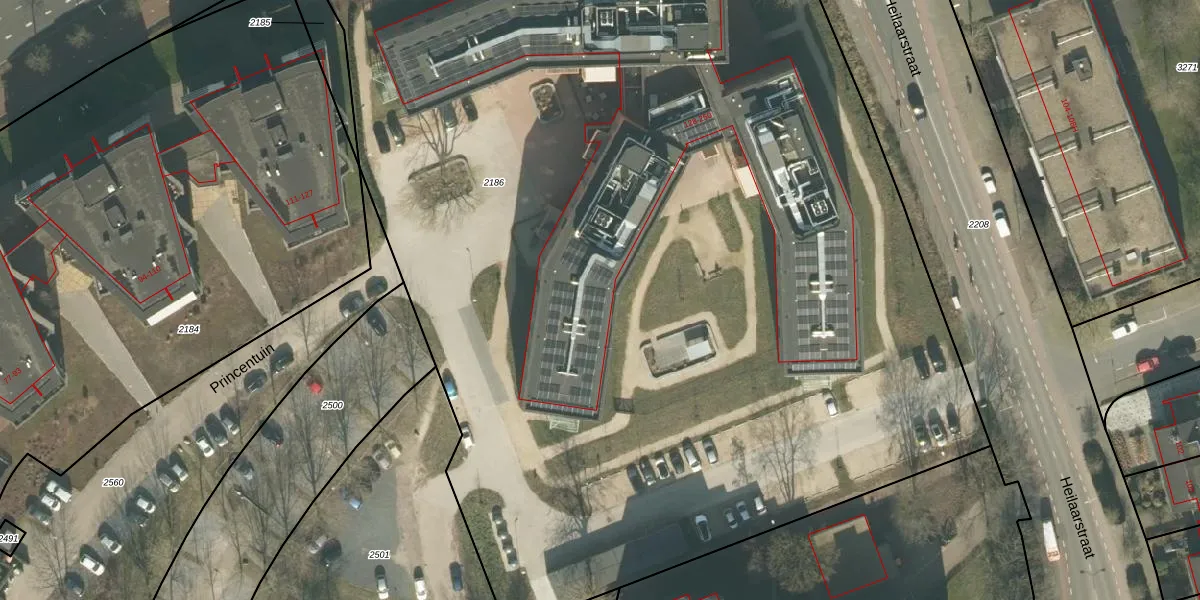Het perceel waarop Princentuin 168 staat heeft een oppervlakte van 9540 m². Dit is een zeer groot perceel. De perceeloppervlakte wordt geregistreerd door het Kadaster. Gedetailleerde informatie over de maten van dit perceel kunt u vinden in het rapport Kadastrale kaart met maatvoering van Princentuin 168.