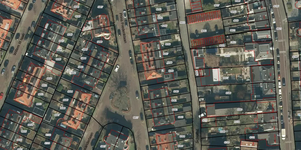 Het perceel waarop Prins Frederiklaan 24 staat heeft een oppervlakte van 313 m². Dit is een groot perceel. De perceeloppervlakte wordt geregistreerd door het Kadaster. Gedetailleerde informatie over de maten van dit perceel kunt u vinden in het rapport Kadastrale kaart met maatvoering van Prins Frederiklaan 24.