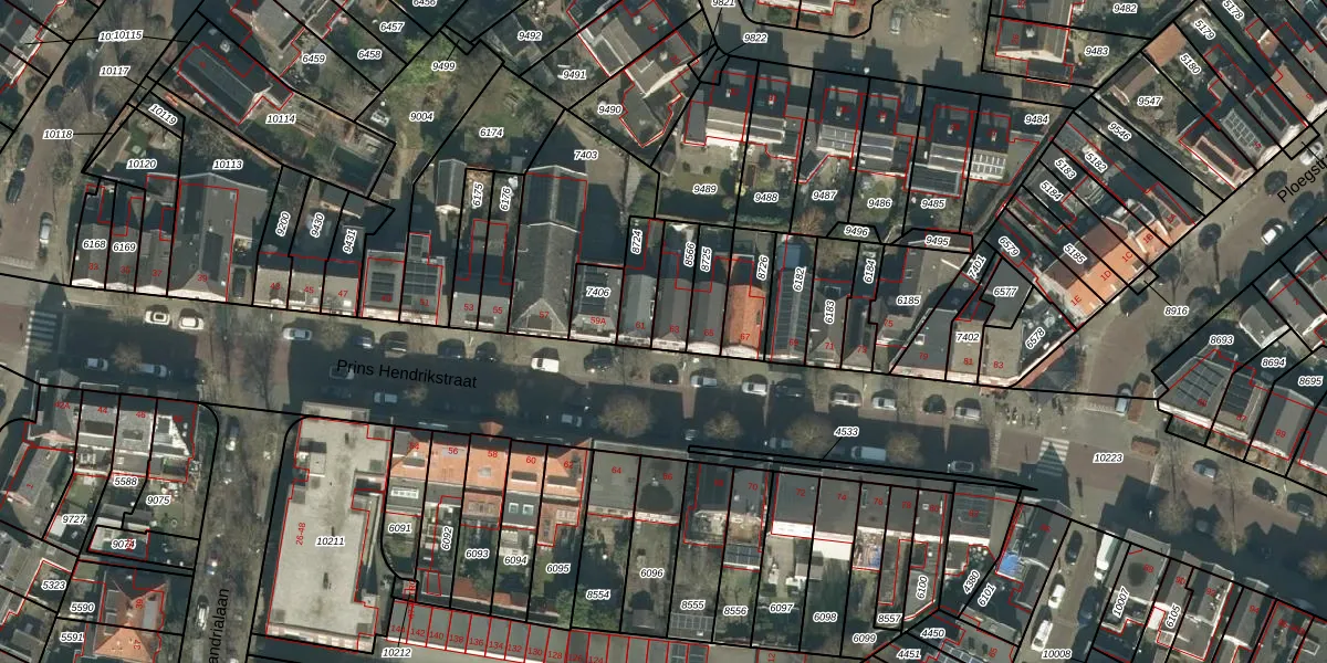 Het perceel waarop Prins Hendrikstraat 63 staat heeft een oppervlakte van 103 m². Dit is een middelgroot perceel. De perceeloppervlakte wordt geregistreerd door het Kadaster. Gedetailleerde informatie over de maten van dit perceel kunt u vinden in het rapport Kadastrale kaart met maatvoering van Prins Hendrikstraat 63.