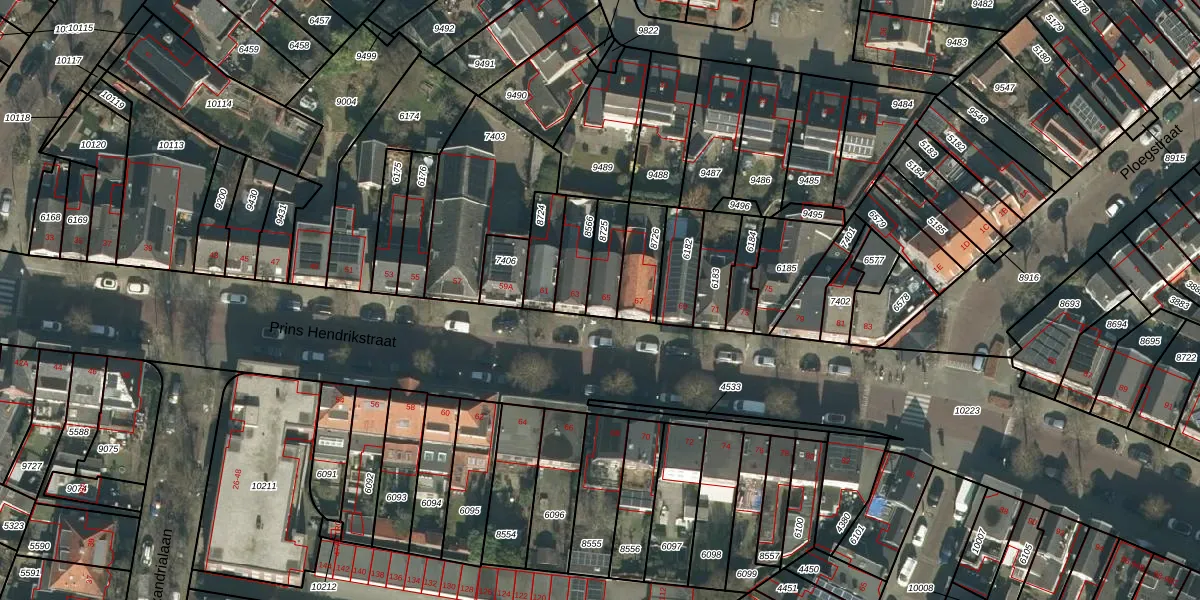 Het perceel waarop Prins Hendrikstraat 65 staat heeft een oppervlakte van 105 m². Dit is een middelgroot perceel. De perceeloppervlakte wordt geregistreerd door het Kadaster. Gedetailleerde informatie over de maten van dit perceel kunt u vinden in het rapport Kadastrale kaart met maatvoering van Prins Hendrikstraat 65.
