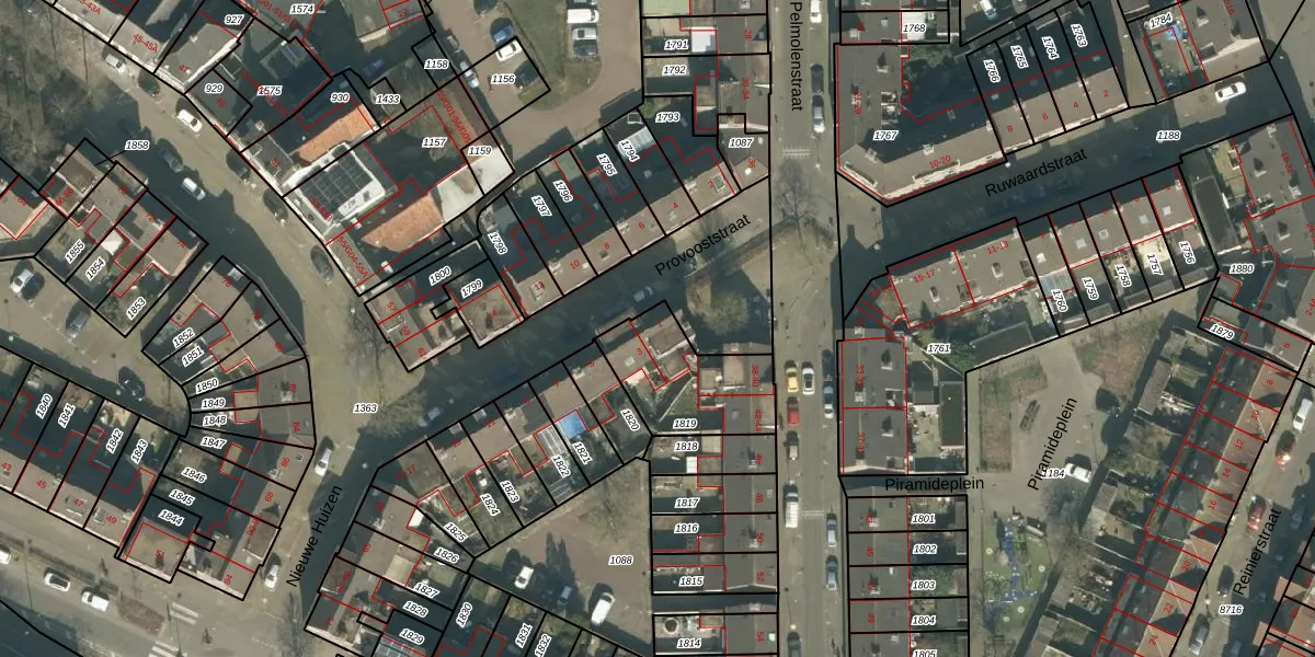 Het perceel waarop Provooststraat 1 staat heeft een oppervlakte van 355 m². Dit is een groot perceel. De perceeloppervlakte wordt geregistreerd door het Kadaster. Gedetailleerde informatie over de maten van dit perceel kunt u vinden in het rapport Kadastrale kaart met maatvoering van Provooststraat 1.