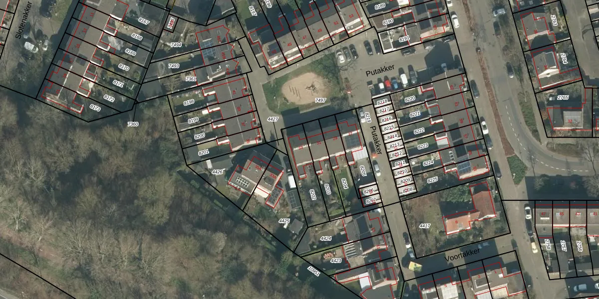 Putakker 33 is gelegen op kadastraal perceel BDA00H8202. Deze kadastrale aanduiding is uniek en wordt gebruikt door het Kadaster om eigendomsrechten en andere zakelijke rechten vast te leggen. Het perceel maakt onderdeel uit van de kadastrale gemeente Breda.