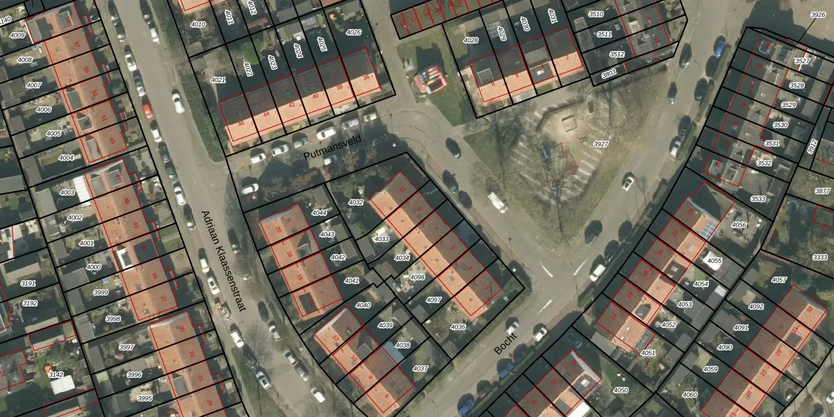 Gebruik de zoekbalk of klik op een perceel voor informatie over de adressen binnen dit perceel.