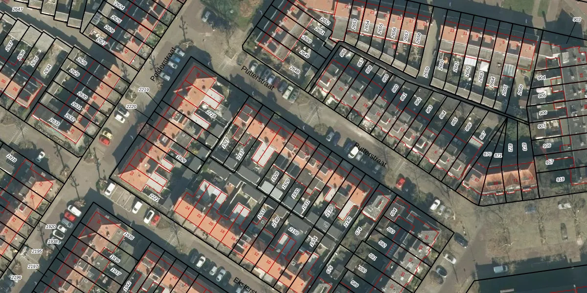 Gebruik de zoekbalk of klik op een perceel voor informatie over de adressen binnen dit perceel.