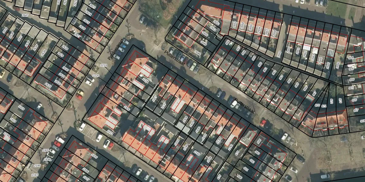 Putterstraat 23 is gelegen op kadastraal perceel BDA00C2221. Deze kadastrale aanduiding is uniek en wordt gebruikt door het Kadaster om eigendomsrechten en andere zakelijke rechten vast te leggen. Het perceel maakt onderdeel uit van de kadastrale gemeente Breda.
