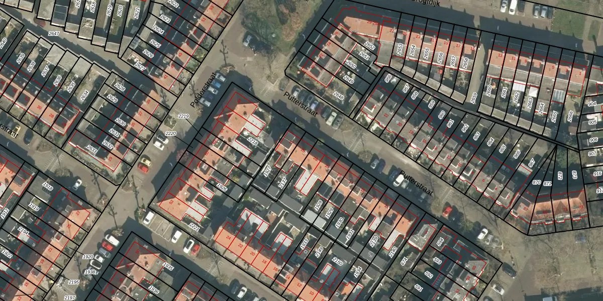 Het perceel waarop Putterstraat 25 staat heeft een oppervlakte van 117 m². Dit is een middelgroot perceel. De perceeloppervlakte wordt geregistreerd door het Kadaster. Gedetailleerde informatie over de maten van dit perceel kunt u vinden in het rapport Kadastrale kaart met maatvoering van Putterstraat 25.