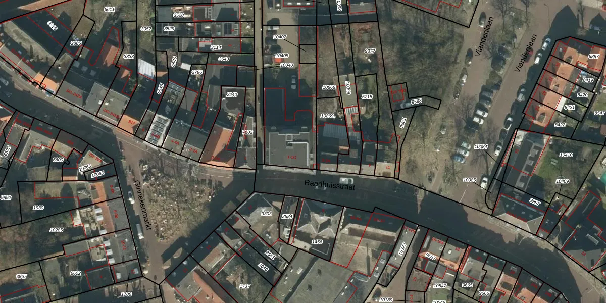 Raadhuisstraat 1-D is gelegen op kadastraal perceel GNK02I10408. Deze kadastrale aanduiding is uniek en wordt gebruikt door het Kadaster om eigendomsrechten en andere zakelijke rechten vast te leggen. Het perceel maakt onderdeel uit van de kadastrale gemeente Ginneken.