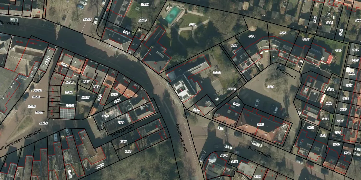 Raadhuisstraat 25 is gelegen op kadastraal perceel GNK02I10281. Deze kadastrale aanduiding is uniek en wordt gebruikt door het Kadaster om eigendomsrechten en andere zakelijke rechten vast te leggen. Het perceel maakt onderdeel uit van de kadastrale gemeente Ginneken.