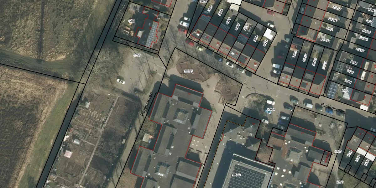 Raaimoeren 21 is gelegen op kadastraal perceel BDA00H10895. Deze kadastrale aanduiding is uniek en wordt gebruikt door het Kadaster om eigendomsrechten en andere zakelijke rechten vast te leggen. Het perceel maakt onderdeel uit van de kadastrale gemeente Breda.