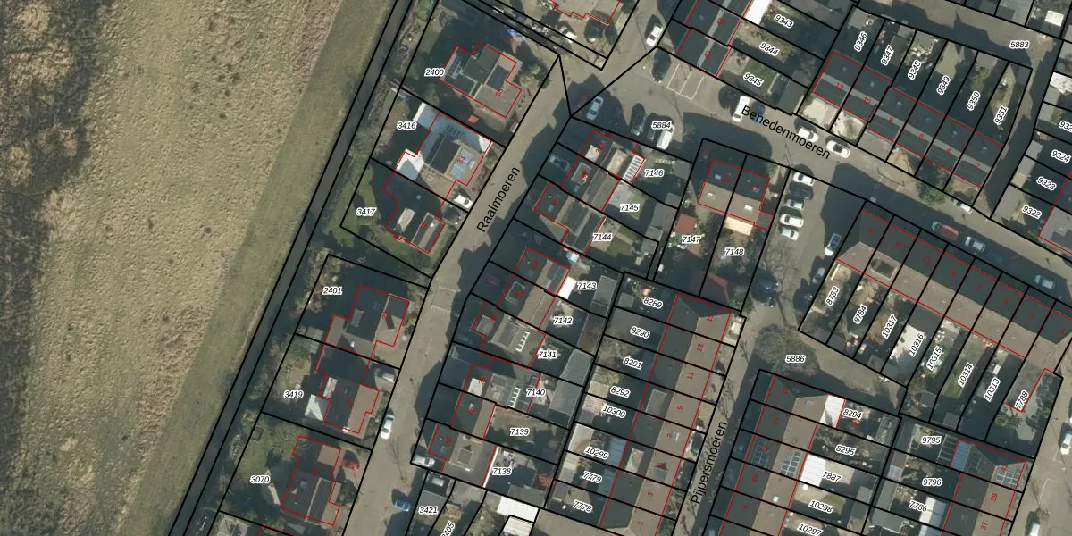 Raaimoeren 34 is gelegen op kadastraal perceel BDA00H7143. Deze kadastrale aanduiding is uniek en wordt gebruikt door het Kadaster om eigendomsrechten en andere zakelijke rechten vast te leggen. Het perceel maakt onderdeel uit van de kadastrale gemeente Breda.