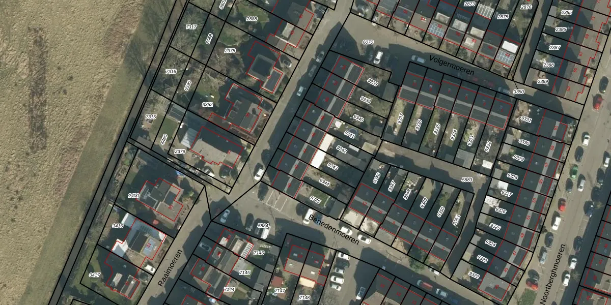 Raaimoeren 44 is gelegen op kadastraal perceel BDA00H9343. Deze kadastrale aanduiding is uniek en wordt gebruikt door het Kadaster om eigendomsrechten en andere zakelijke rechten vast te leggen. Het perceel maakt onderdeel uit van de kadastrale gemeente Breda.