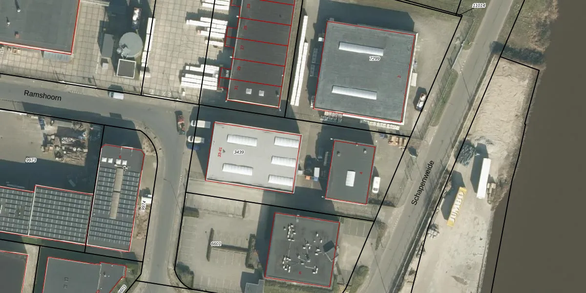 Het perceel waarop Ramshoorn 35 staat heeft een oppervlakte van 2090 m². Dit is een zeer groot perceel. De perceeloppervlakte wordt geregistreerd door het Kadaster. Gedetailleerde informatie over de maten van dit perceel kunt u vinden in het rapport Kadastrale kaart met maatvoering van Ramshoorn 35.