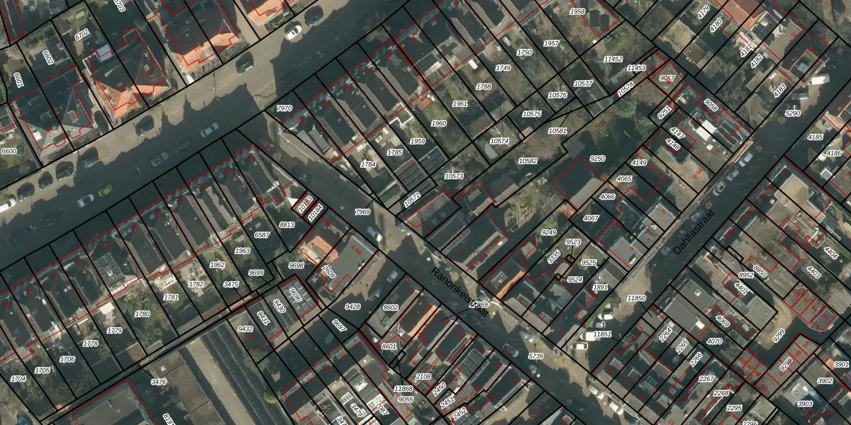 Ranonkelstraat 1 is gelegen op kadastraal perceel BDA00D10573. Deze kadastrale aanduiding is uniek en wordt gebruikt door het Kadaster om eigendomsrechten en andere zakelijke rechten vast te leggen. Het perceel maakt onderdeel uit van de kadastrale gemeente Breda.